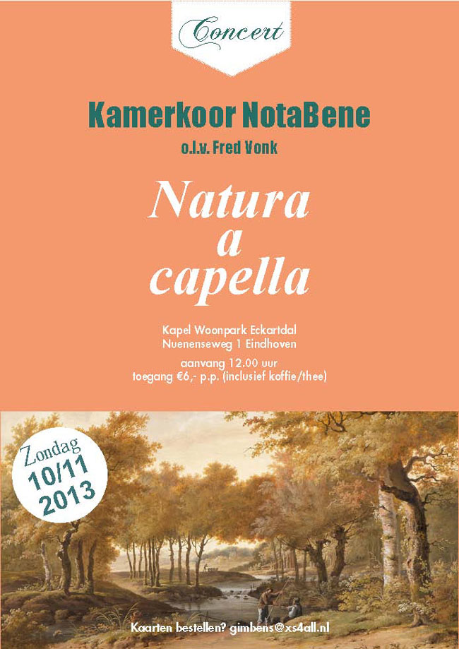 • 10 november 2013: ‘Natura a capella’, optreden in de kapel van Woonpark Eckartdal in Eindhoven.