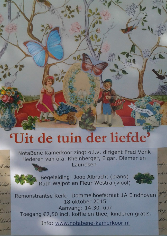 • 18 oktober: Optreden ‘Uit de tuin der liefde’ in de Remonstrantse Kerk in Eindhoven.